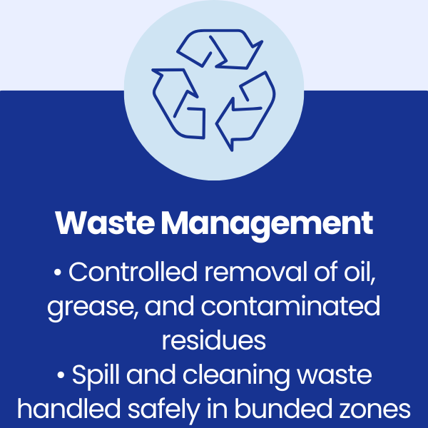 required a reliable, specialist contractor capable of delivering rapid oil spill clean-up and factory maintenance cleaning aligned precisely with engineering shutdown programmes.