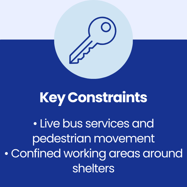 • Scheduling works to minimise disruption to public movement and bus timetables
