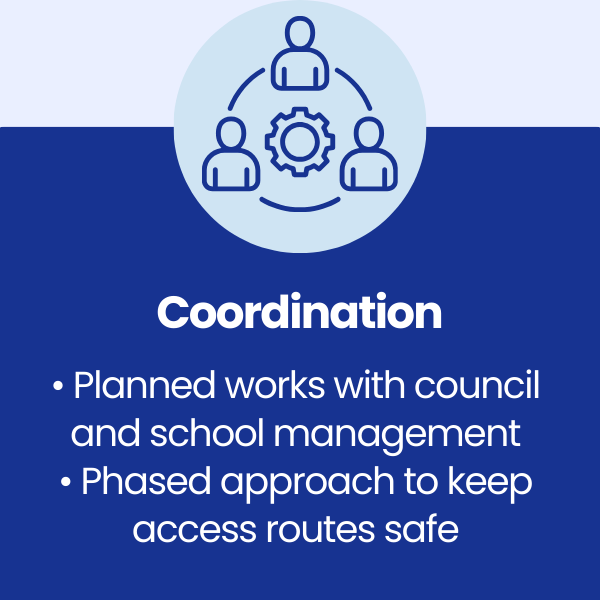 The works improved both the appearance and safety of the school’s external environment while meeting council requirements.