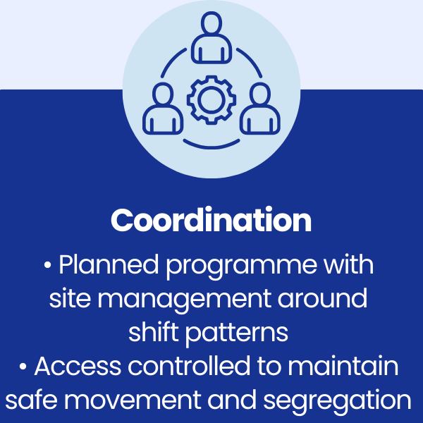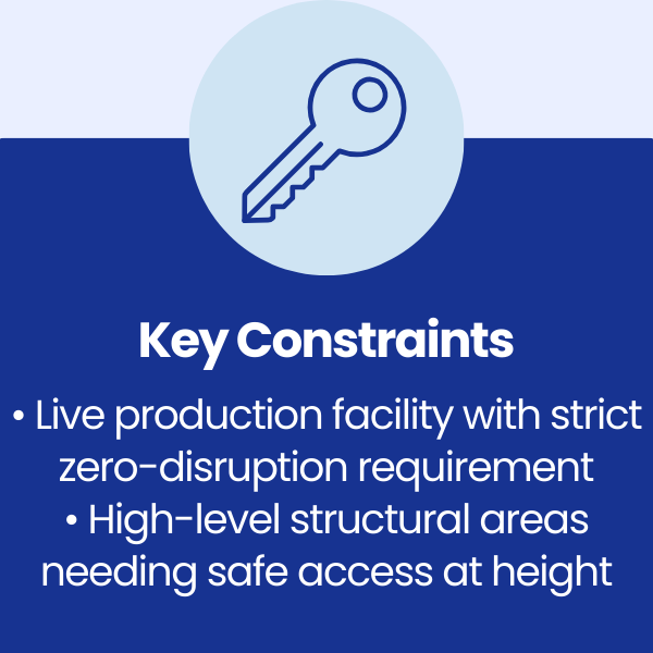 As a live operational site running standard daytime production shifts, the client needed the works completed without disrupting production, staff movement, or on-site operations. The cleaning programme therefore had to be carefully planned and delivered outside of operational hours while maintaining strict health and safety compliance.