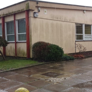 The assessment focused on surface condition, extent of algae contamination, safeguarding requirements, and access planning within a live educational setting. Test areas were completed where required to agree finish standards and confirm that the proposed method would achieve the desired results without damaging the render coating.