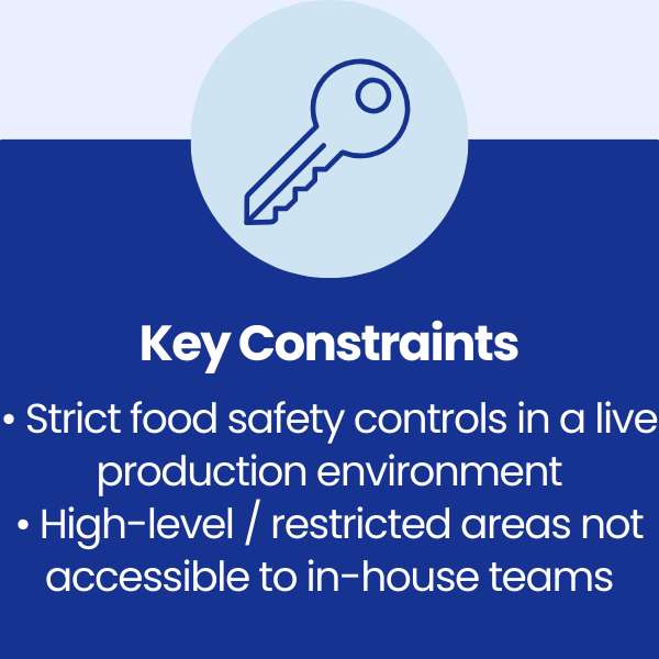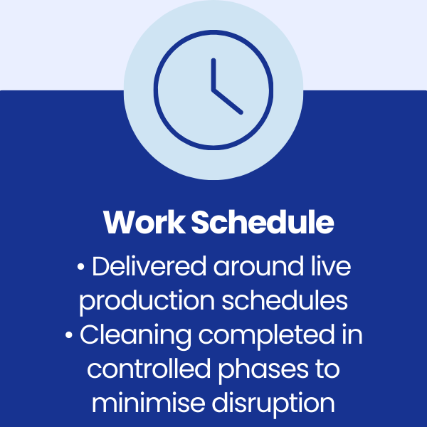 The client required an accredited contractor capable of delivering a food-safe deep clean, working within a live production environment and with minimal disruption to operational schedules.