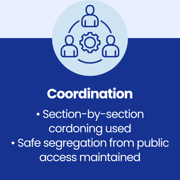 • Works completed safely within a live public environment