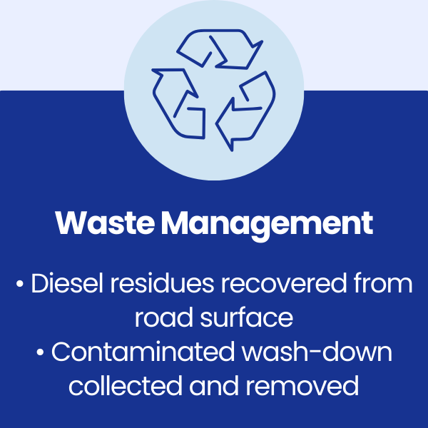 • Effectively removing diesel contamination from the carriageway