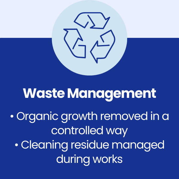 3. Super-heated steam cleaning using long-reach lances to safely clean high-level and difficult-to-access areas.