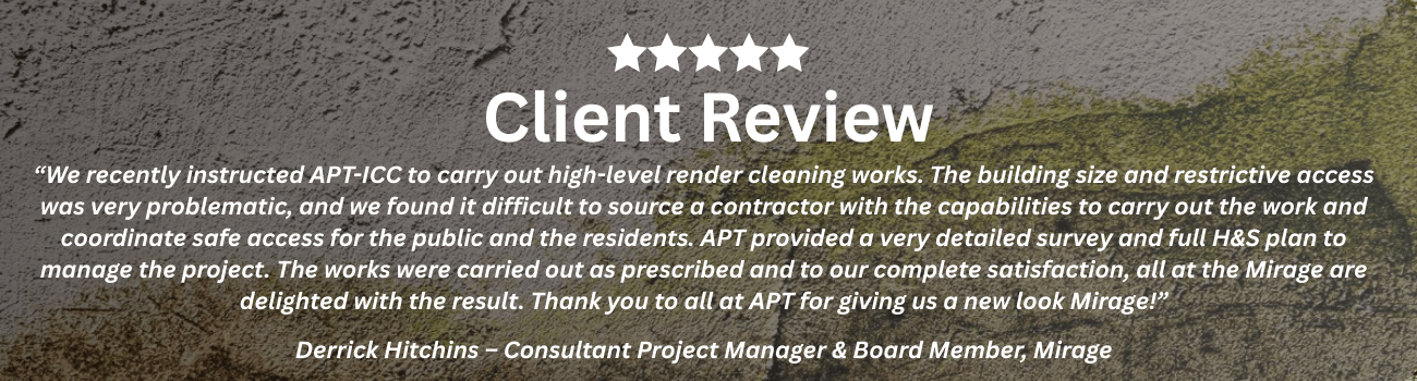 The client and residents’ representatives expressed high satisfaction with the outcome, recognising APT ICC’s ability to manage technically complex façade cleaning works in challenging live environments.