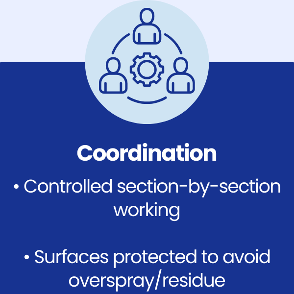 1. Protection of surrounding surfaces and controlled segregation of the working area to prevent overspray or residue transfer