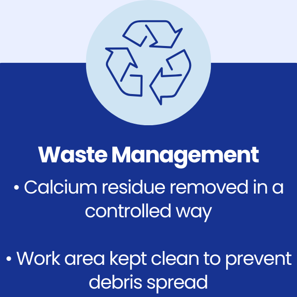 APT ICC held detailed discussions with the client to confirm the extent of calcium build-up, affected areas, and the expected finish standard. A site assessment was completed to determine the safest and most effective